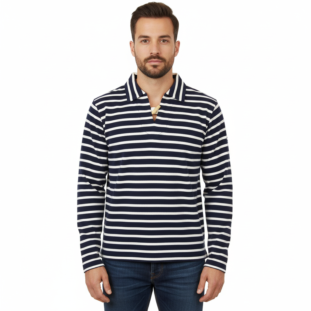 Cette marinière mixte à col ouvert revisite l’iconique marinière bretonne avec une touche de modernité et une coupe confortable. Avec ses rayures et sa forme, elle incarne l’élégance simple et intemporelle du vestiaire marin. Un joli bouton en bois vient souligner le col fendu, apportant une touche naturelle et authentique au modèle.